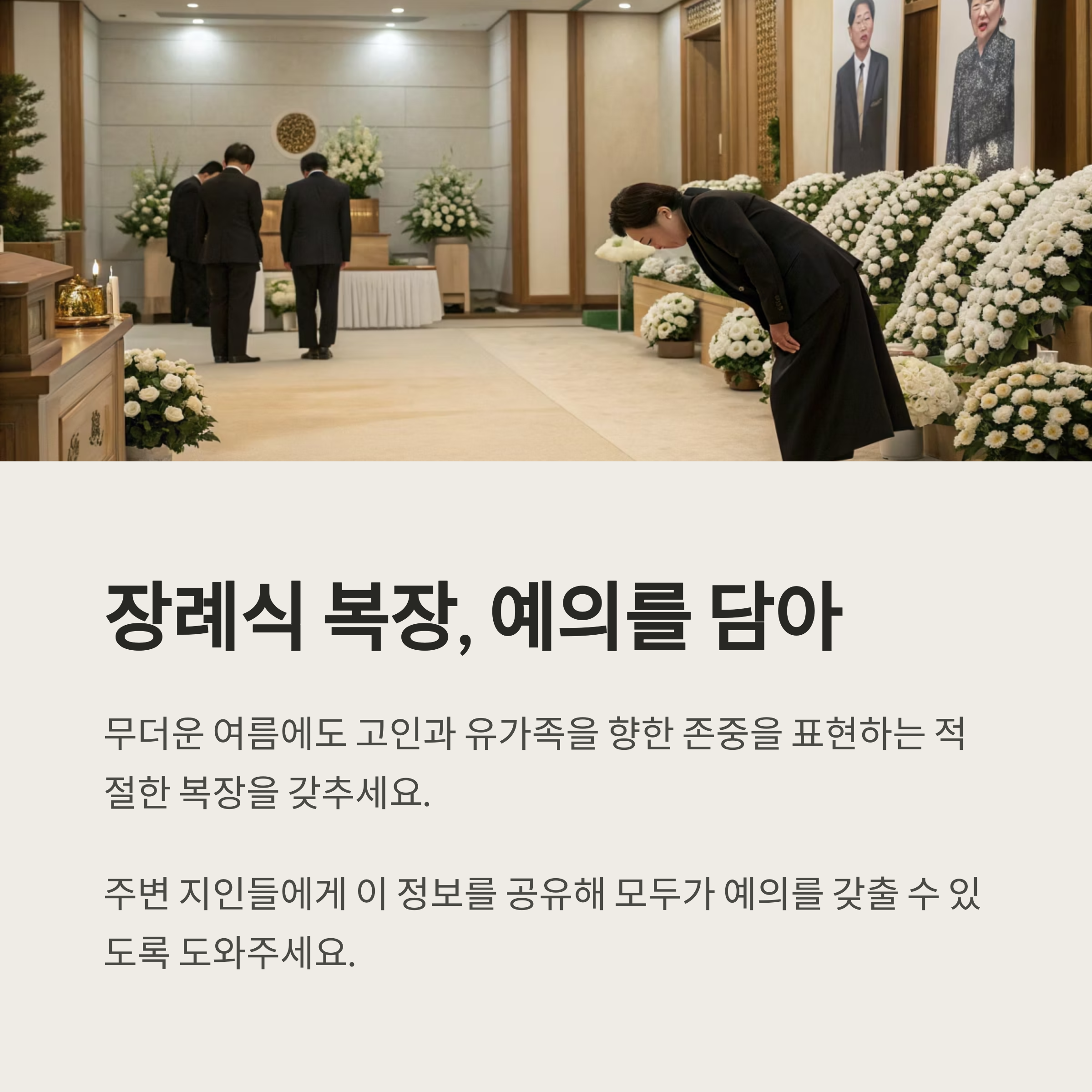 장례식은 고인의 마지막 길을 배웅하는 매우 중요한 자리예요. 특히 여름철에는 무더운 날씨 속에서도 예의와 단정함을 갖춘 복장이 요구돼요. 옷차림 하나하나가 유가족과 다른 조문객에게 주는 인상이 있기 때문에 더욱 신경을 써야 해요.