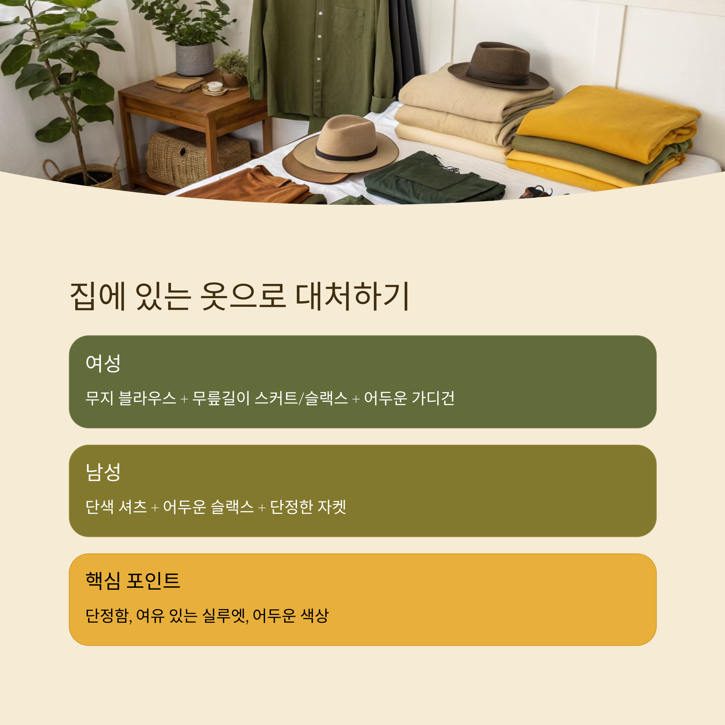 장례식은 예고 없이 갑작스럽게 찾아올 수 있어요. 특히 복장에 대한 준비가 되어 있지 않을 때는 당황스러운 경우가 많죠. 하지만 집에 있는 옷들만으로도 충분히 단정하고 예의를 갖춘 복장을 완성할 수 있어요. 중요한 건 분위기와 격식에 맞춘 태도랍니다.