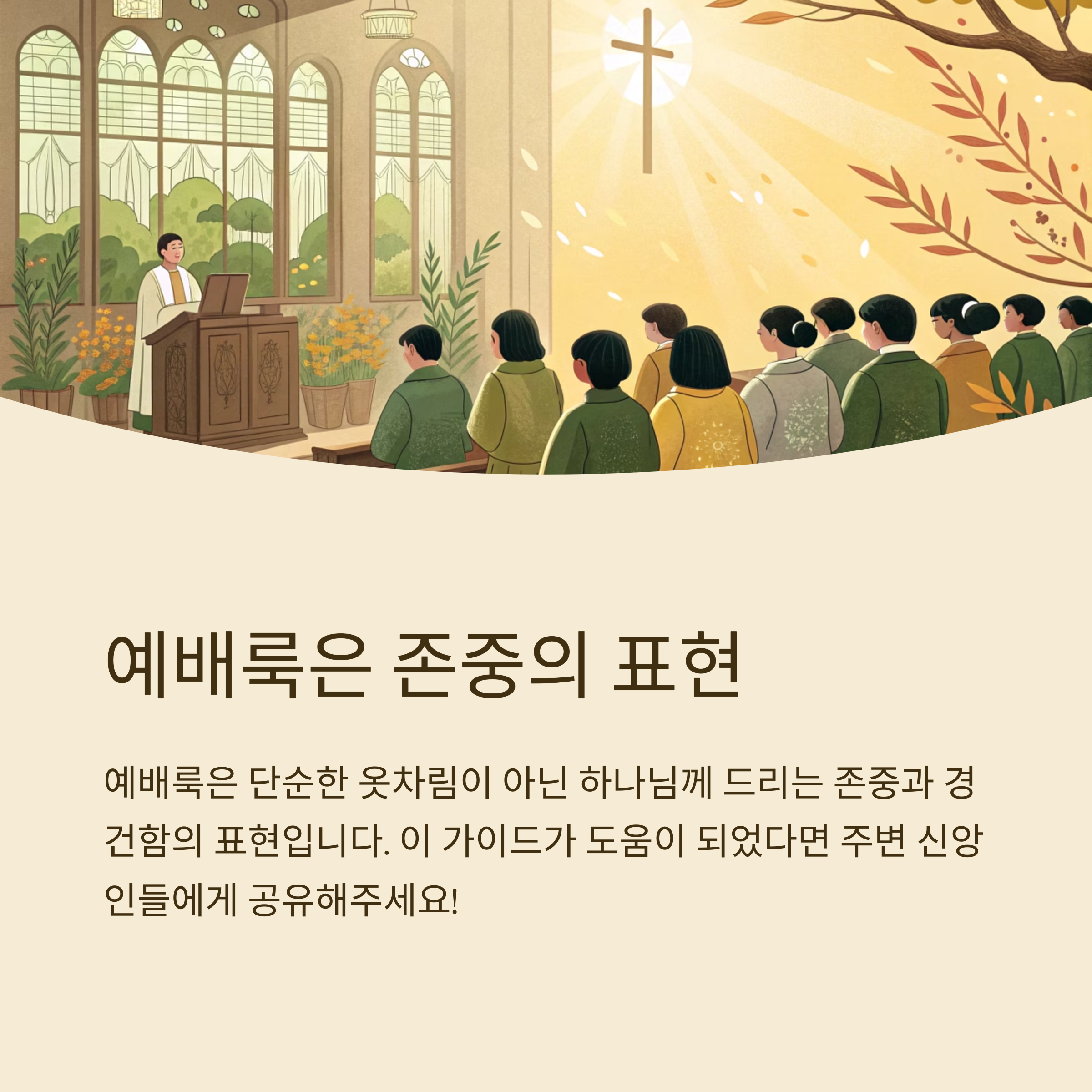 내가 생각했을 때 예배룩은 신앙심을 나타내는 또 하나의 언어 같아요. 나의 자세와 태도가 담긴 작은 정성이 바로 예배의 분위기를 바꾸기도 하니까요. 그럼 지금부터 교회 예배룩의 예의에 대해 하나씩 알아볼게요! 🙌