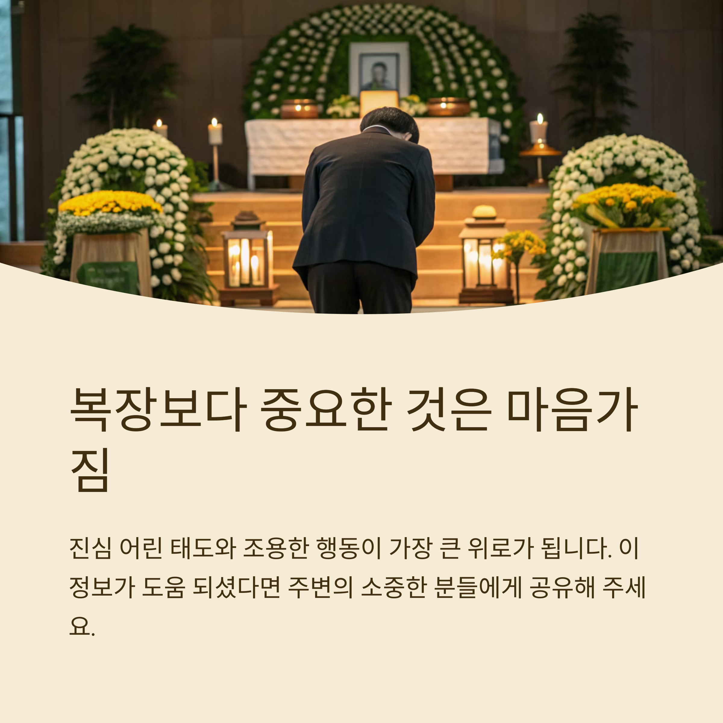 📌 본 정보는 일반적인 조문 예절에 근거해 작성된 가이드로, 특정 종교 또는 지역 풍습에 따라 다를 수 있어요. 상황에 따라 현장의 지침을 우선으로 따라주세요.