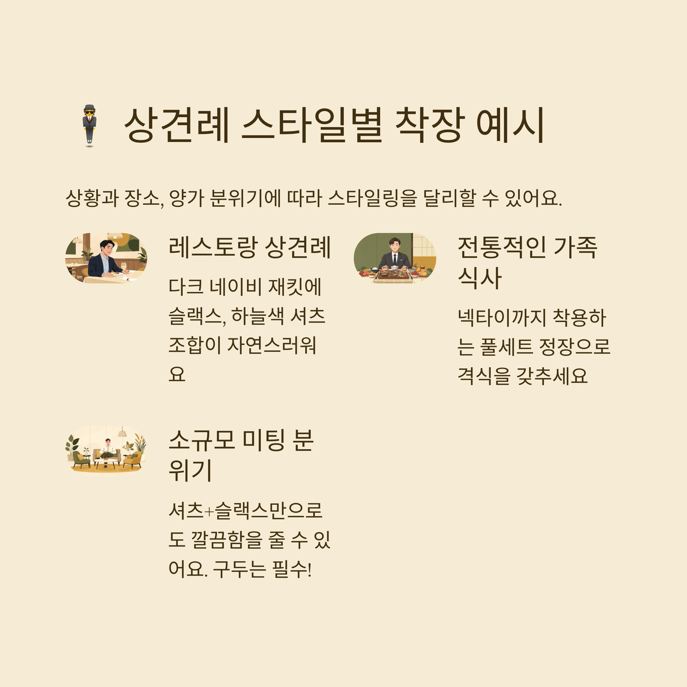 상견례는 단순한 가족 만남이 아니에요. 인생의 중요한 전환점 중 하나로, 두 집안의 첫 만남이기 때문에 서로에 대한 기대감과 긴장이 공존하죠. 이 자리에서 남자가 어떤 옷을 입었느냐에 따라 신뢰감, 성실함, 센스, 가정환경까지 엿보일 수 있어요.