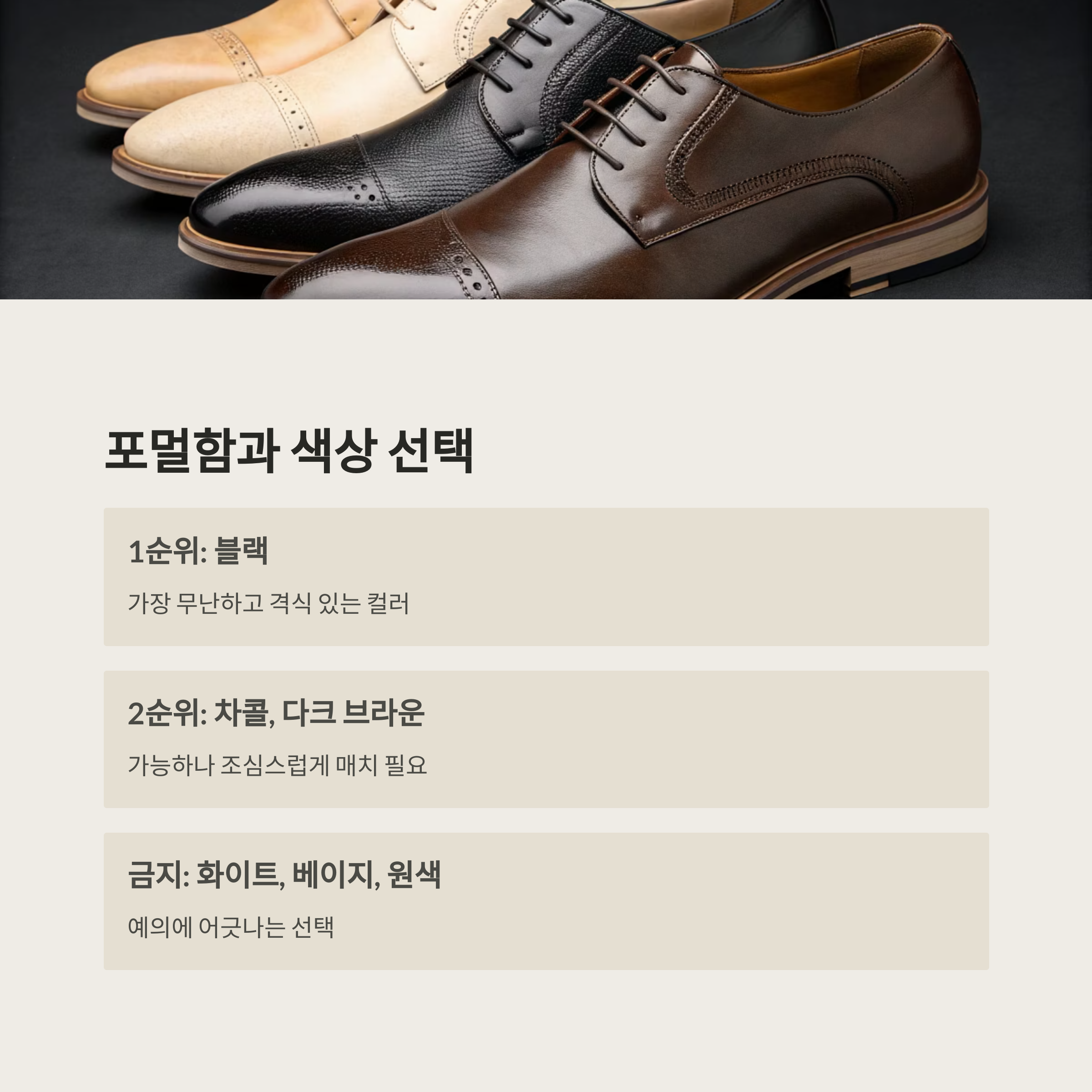 ‘내가 생각했을 때’ 가장 실용적인 선택은 날씨에 맞는 신발을 준비하되, 그 안에서 최대한 단정함과 예의를 갖춘 디자인을 고르는 것이에요. 실용성과 격식을 동시에 챙기는 게 핵심이에요.