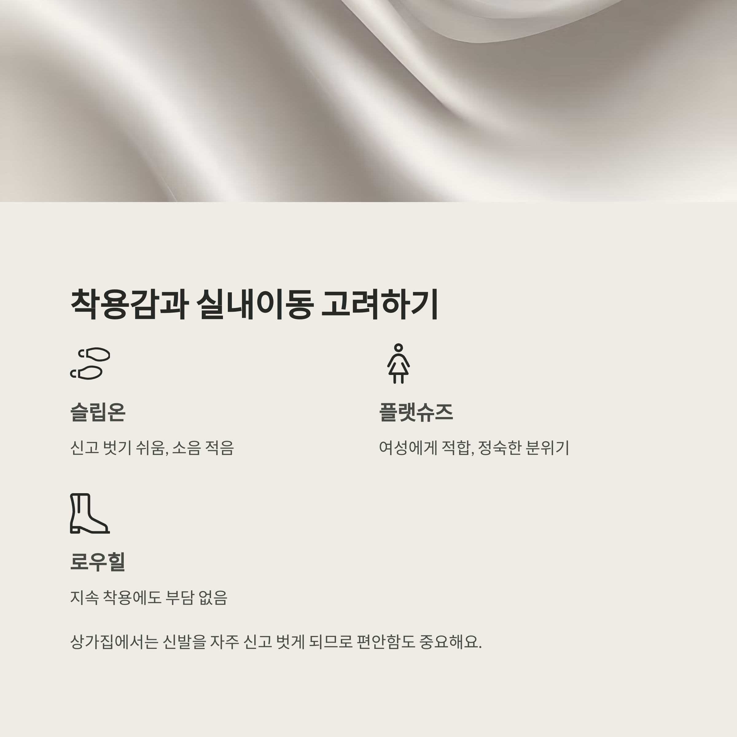 지금부터 상가집 신발 고를 때 꼭 고려해야 할 기준들을 함께 알아볼게요. 계절, 착용감, 실내 이동까지 다 챙겨야 후회 없는 선택이 되니까요.
