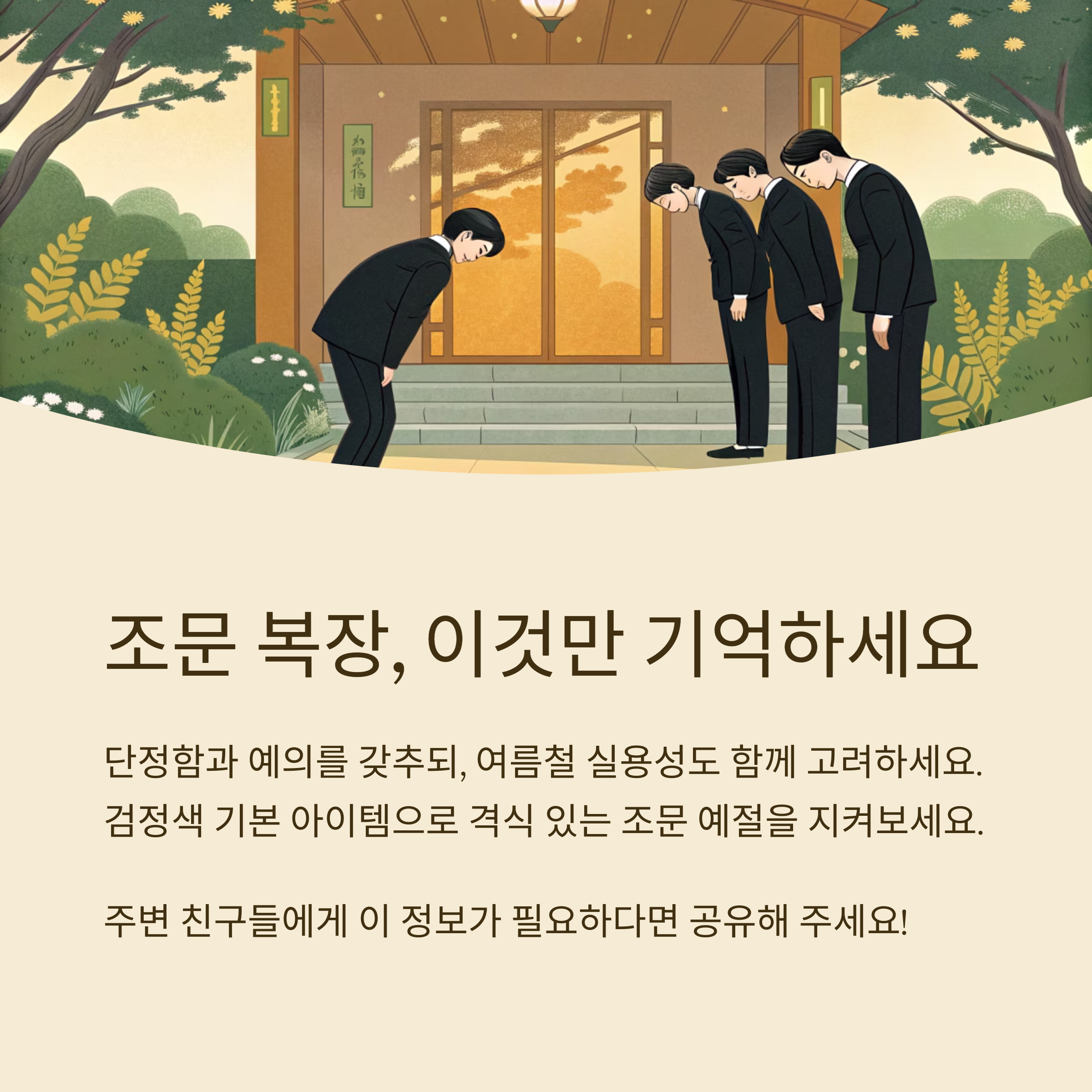 특히 여름철에는 조문 시간도 짧고 야외에서 장례를 치르는 경우가 많기 때문에, 실용적인 복장도 중요해졌어요. 땀이 쉽게 배어나지 않는 소재, 깔끔한 실루엣, 과하지 않은 디테일이 관건이에요.
