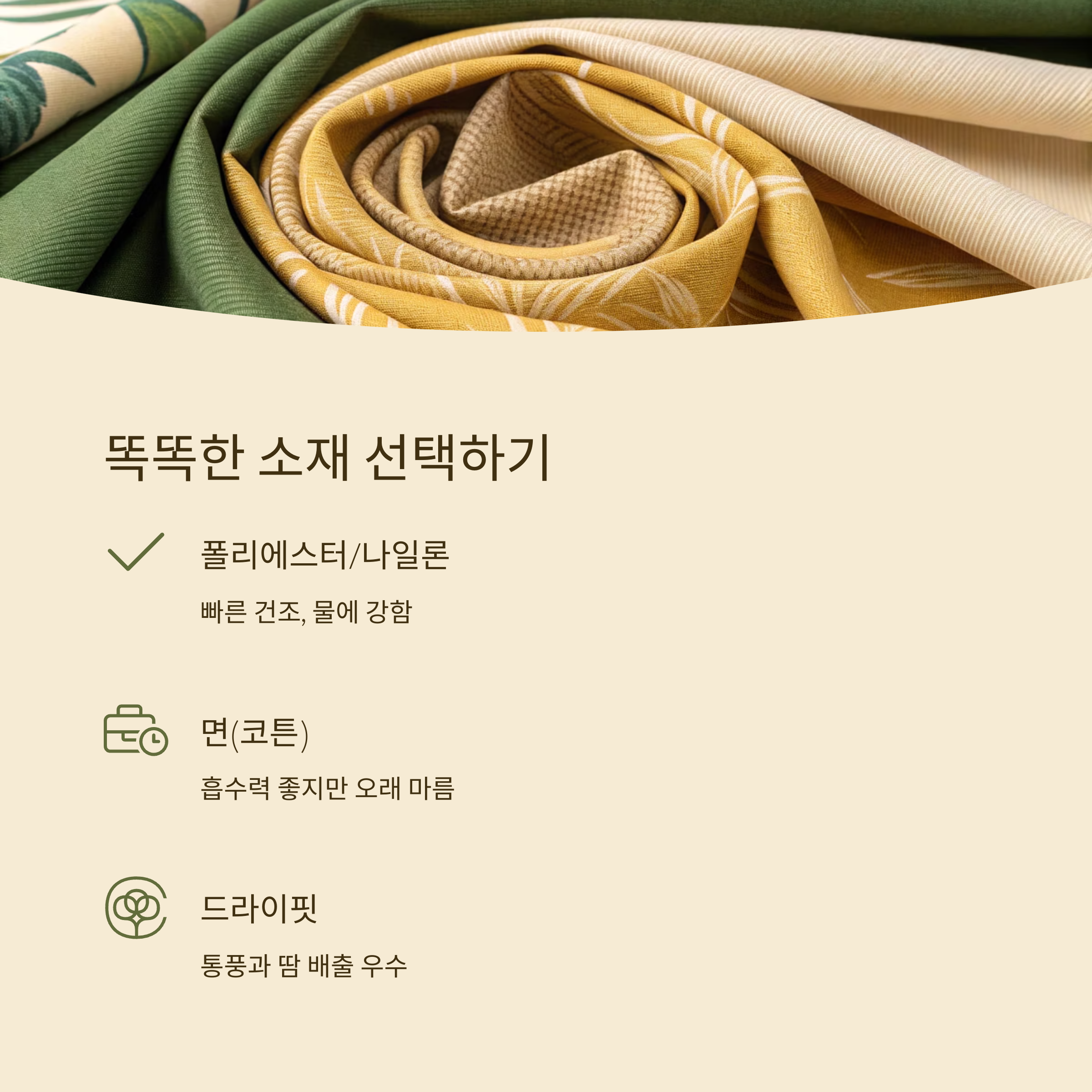 비 오는 날에도 깔끔하고 편하게 입고 싶다면, 이런 소재 정보를 꼭 기억해두면 좋아요. 소재 선택 하나만으로도 옷의 인상이 완전히 달라진답니다 👕