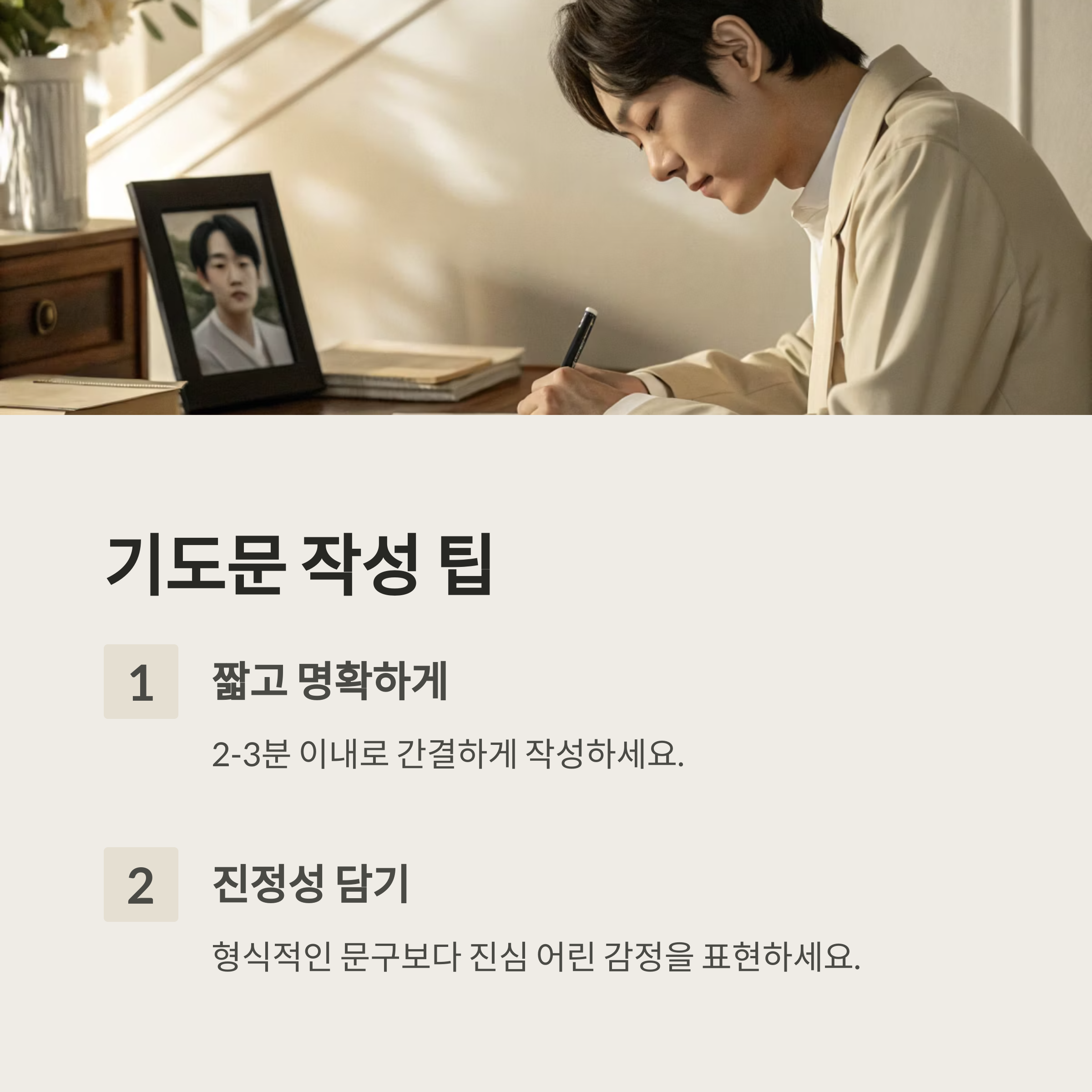 너무 형식적이거나 인터넷에서 본 문장을 그대로 가져오는 것은 피하는 게 좋아요. 기도문은 진정성이 가장 큰 무기이기 때문에, 고인과의 기억이나 감정을 직접 담는 것이 훨씬 큰 감동을 줘요.