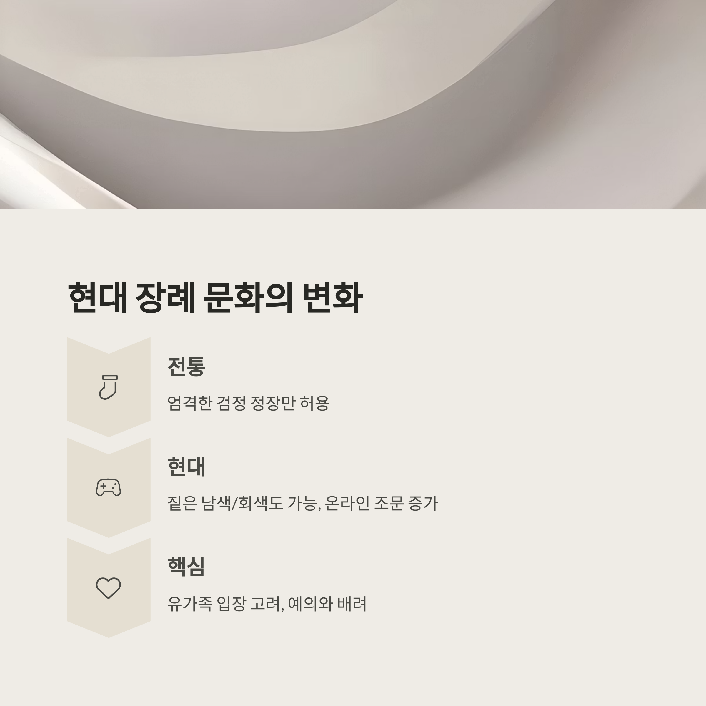 최근 몇 년 사이, 장례 문화도 서서히 변화하고 있어요. 과거에는 무조건 정장만이 정답이었지만, 지금은 '상황에 맞게 예의를 지킨 복장'이라면 유연하게 받아들이는 분위기도 있어요. 하지만 격식이 무너진 건 아니기 때문에, 기본적인 원칙은 지키는 게 좋아요.