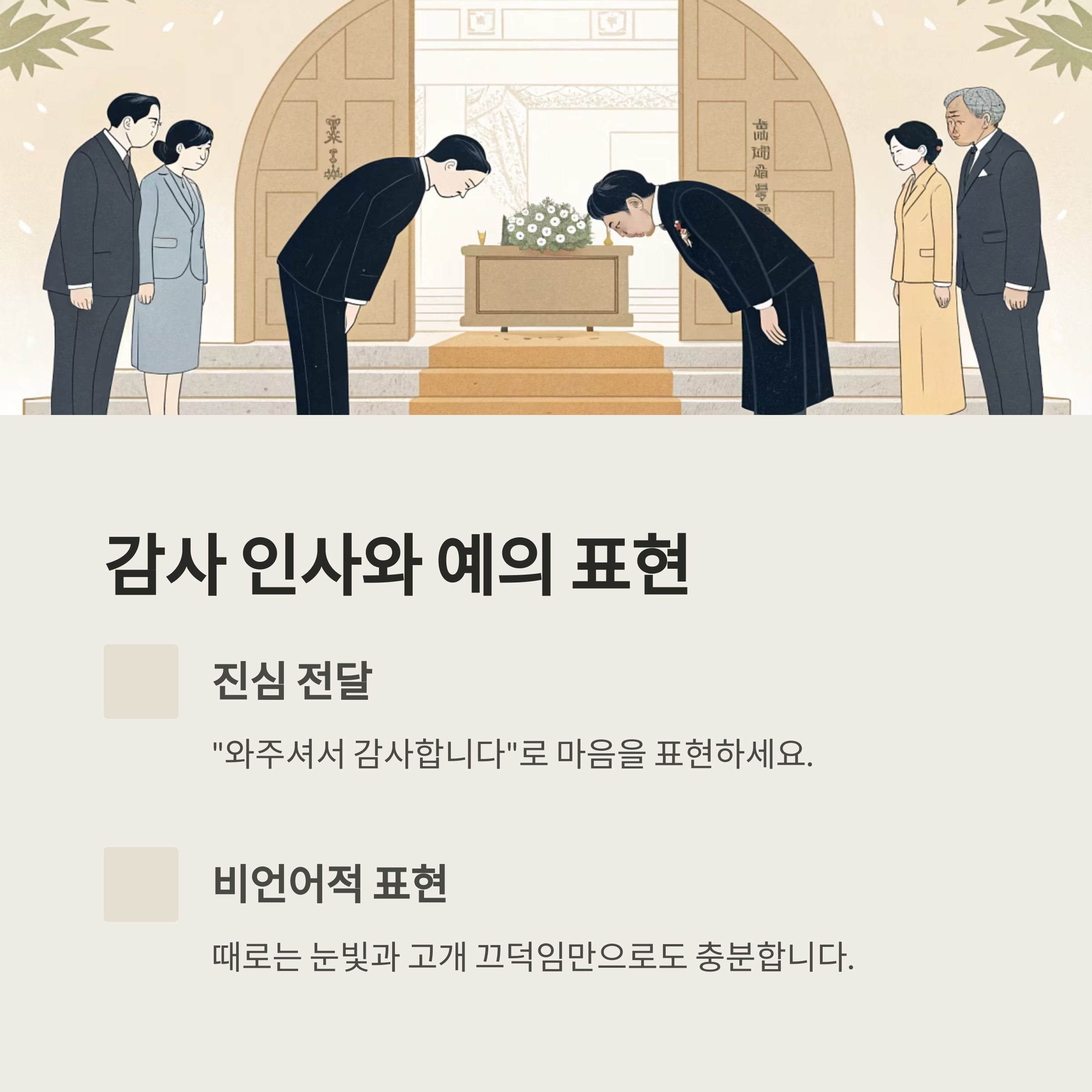 감사 인사에서 중요한 건 형식보다 진심이에요. 상주도 조문객도 서로의 마음을 느끼는 순간, 그게 진정한 위로가 돼요.