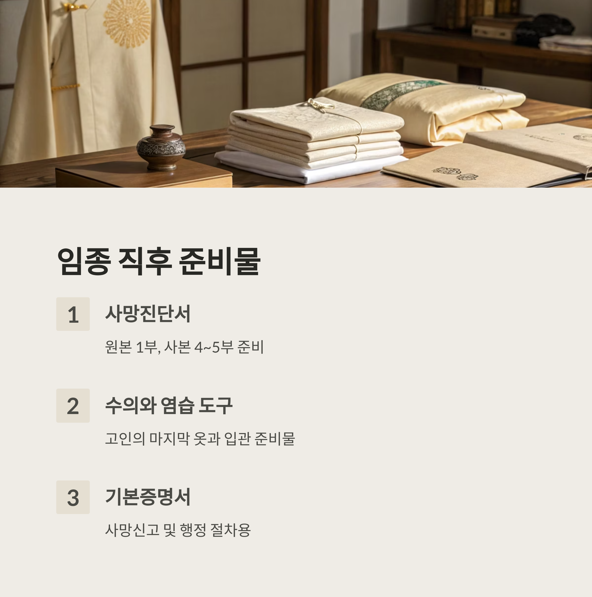임종 직후는 정신적으로 가장 충격이 큰 순간이지만, 동시에 행정과 실무적으로 빠르게 움직여야 하는 시점이에요. 우선 사망 진단서를 받아야 하고, 이 서류는 장례 절차를 진행하는 데 반드시 필요한 문서랍니다. 병원에서 사망했다면 주치의 또는 응급의학과 의사가 발급해줘요.