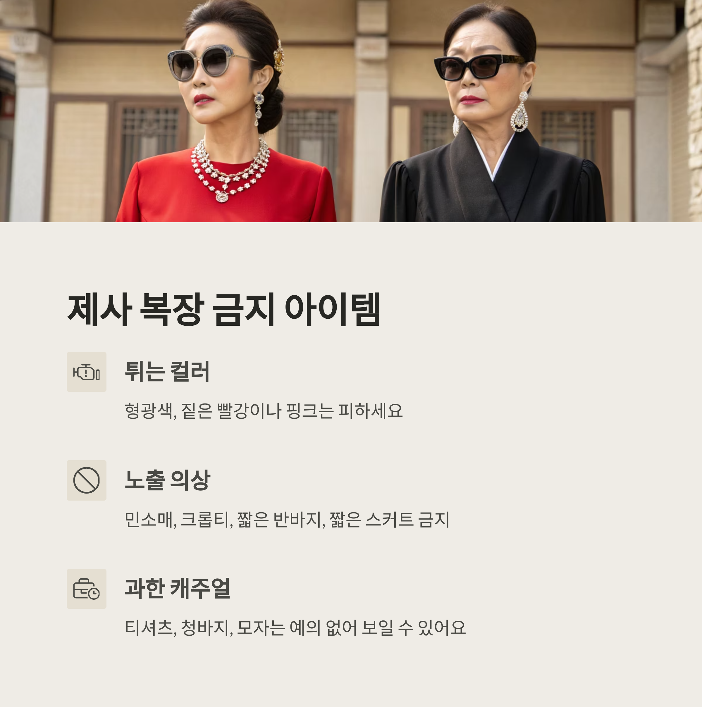 이런 실수들만 피해도 제사 자리에 맞는 복장을 완성할 수 있어요. 기본은 항상 ‘예의’라는 점을 기억해두면 돼요! 🙌
