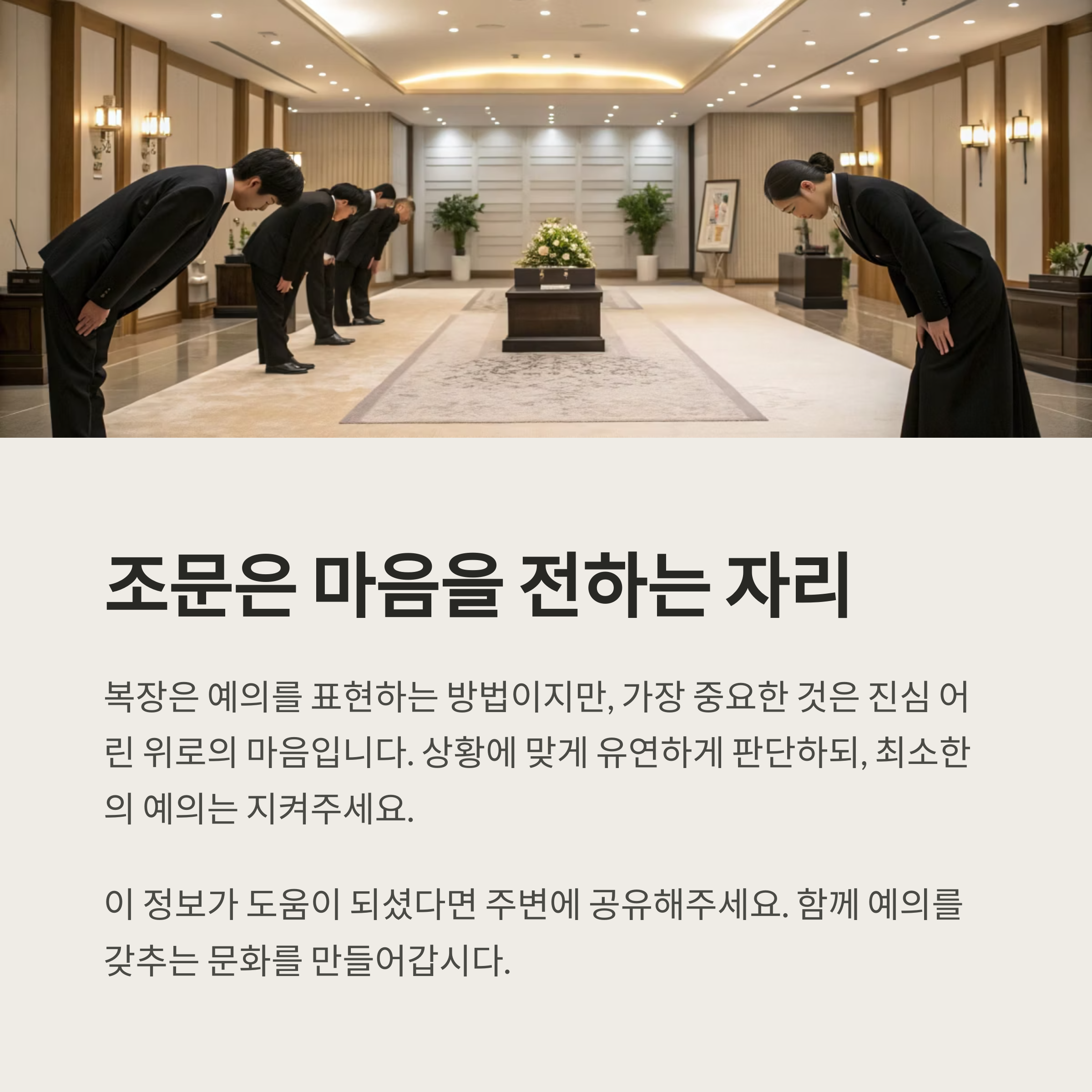 마지막까지 복장이 아닌 마음이 전달되길 바라며, 최소한의 형식은 지키는 게 조문 예절의 기본이라고 생각해요. 조문은 언제나 조심스럽고, 그만큼 마음도 함께 전하는 자리니까요.