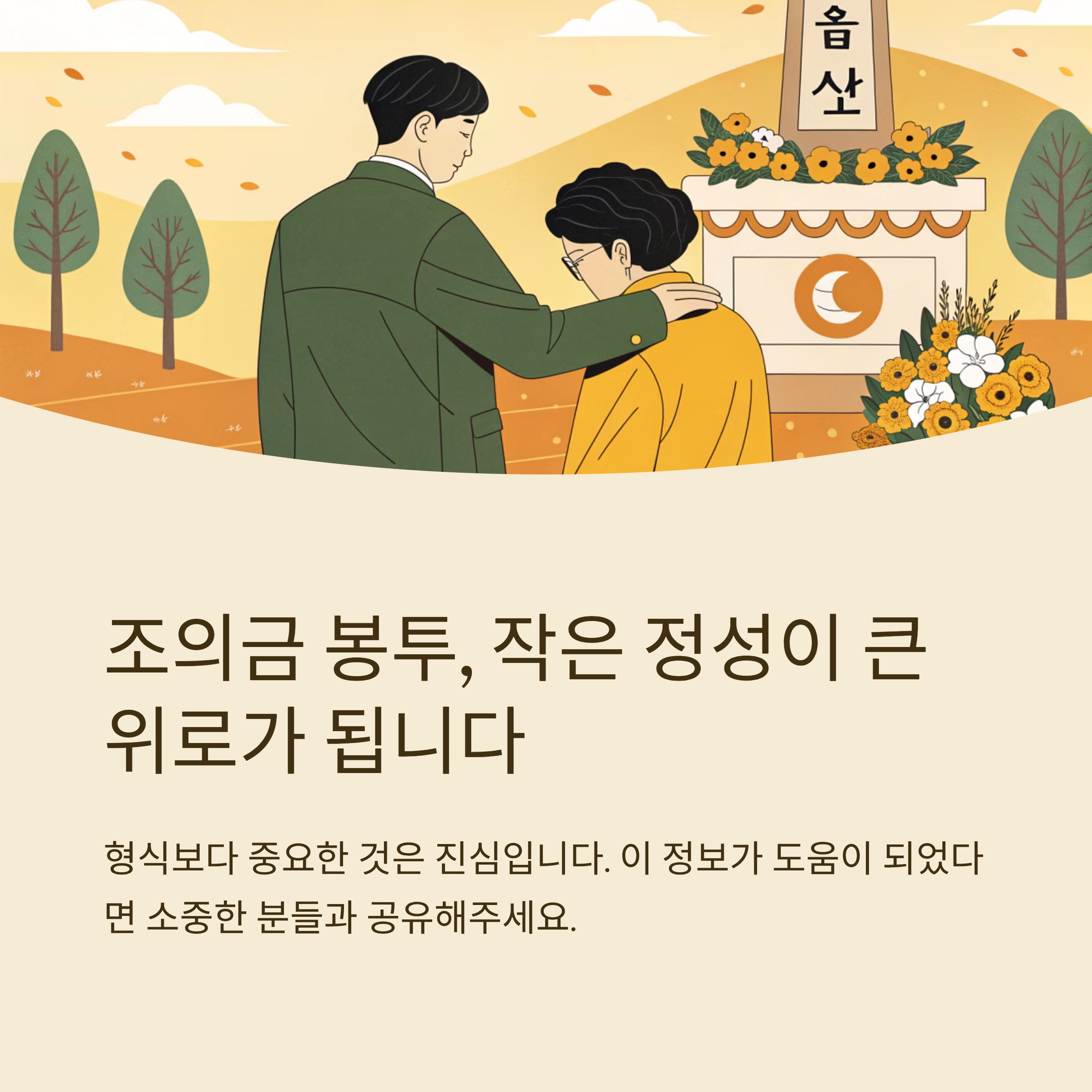 봉투 하나에 담긴 마음이 고인을 기리고, 유족에게 깊은 위로가 될 수 있어요. 진심은 형식 속에서도 느껴지기 마련이기 때문에, 작지만 큰 예절이라고 생각하면 돼요.