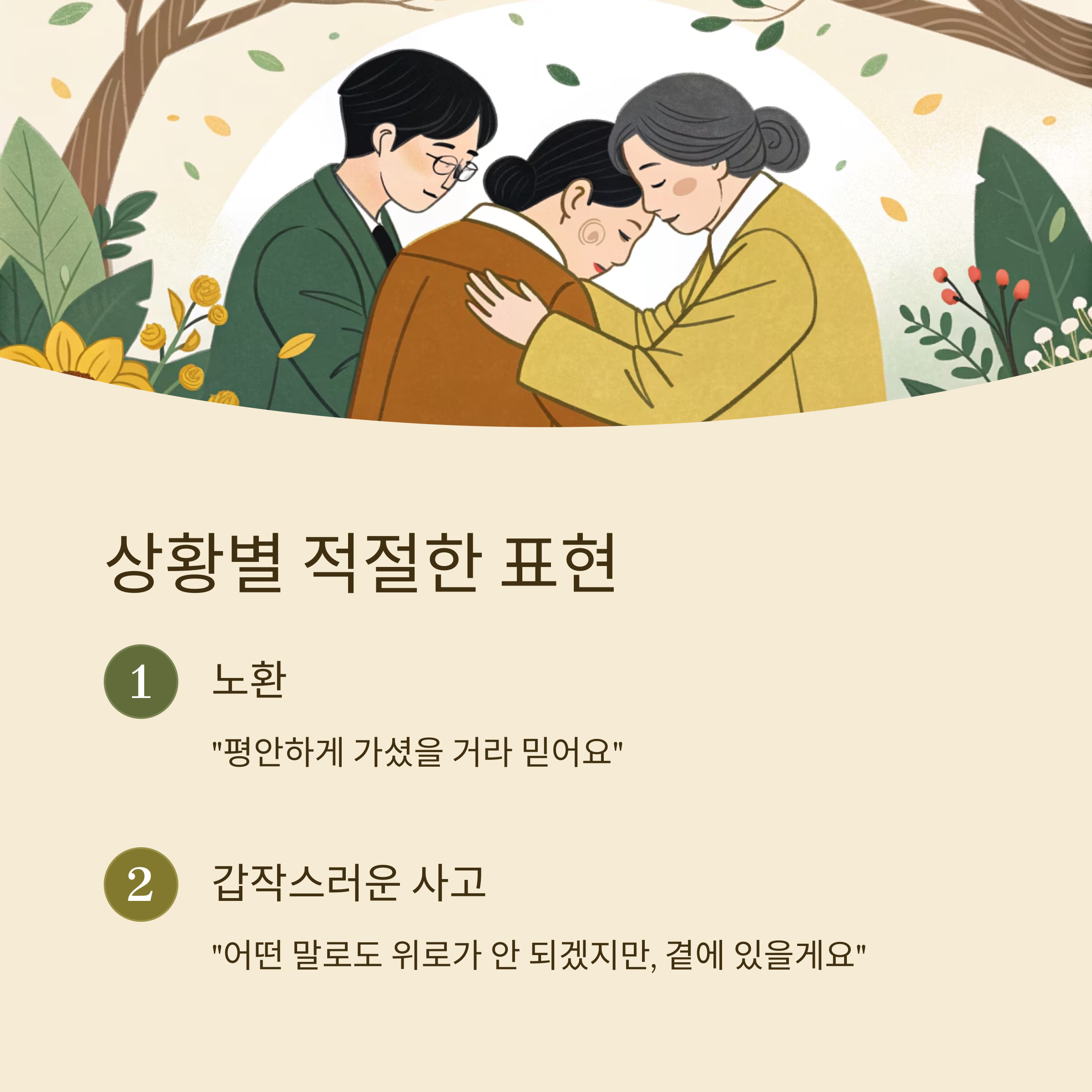 | 힘드시겠어요. 옆에 있을게요 | 가까운 지인에게 | 진심 전달 중요 |