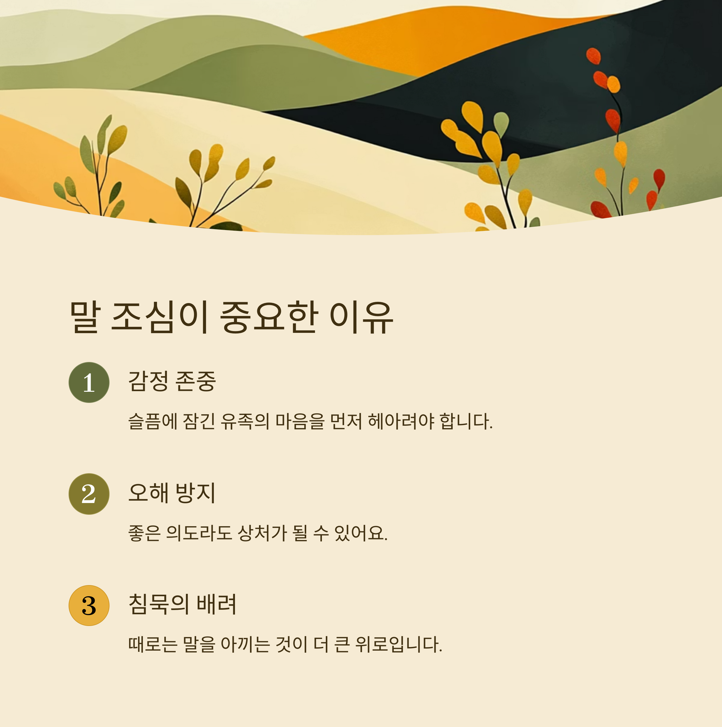 말이라는 건 위로도 될 수 있지만, 상처도 줄 수 있다는 사실을 기억해야 해요. 특히 초상집처럼 감정이 예민한 상황에서는 진심과 공감만이 답이에요.