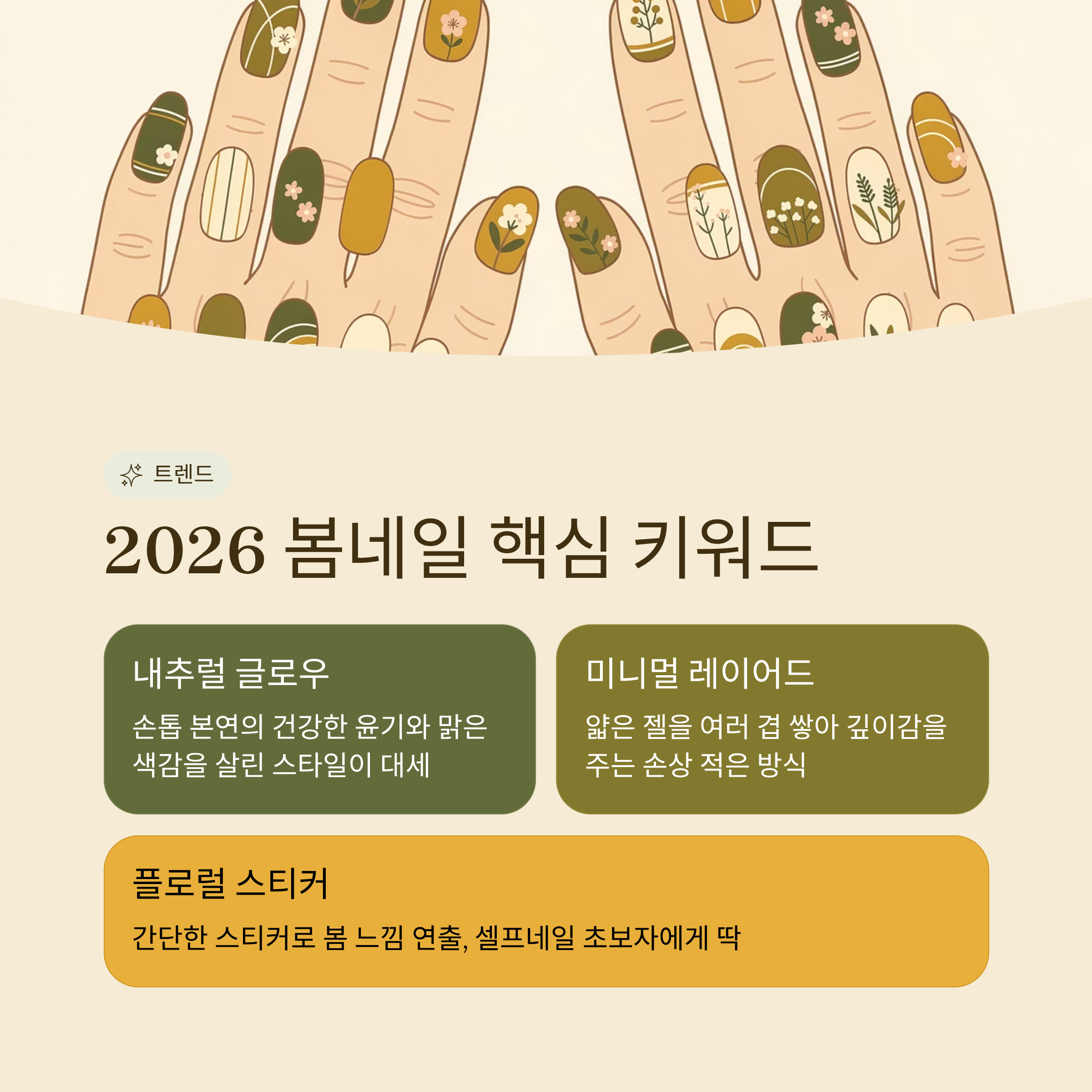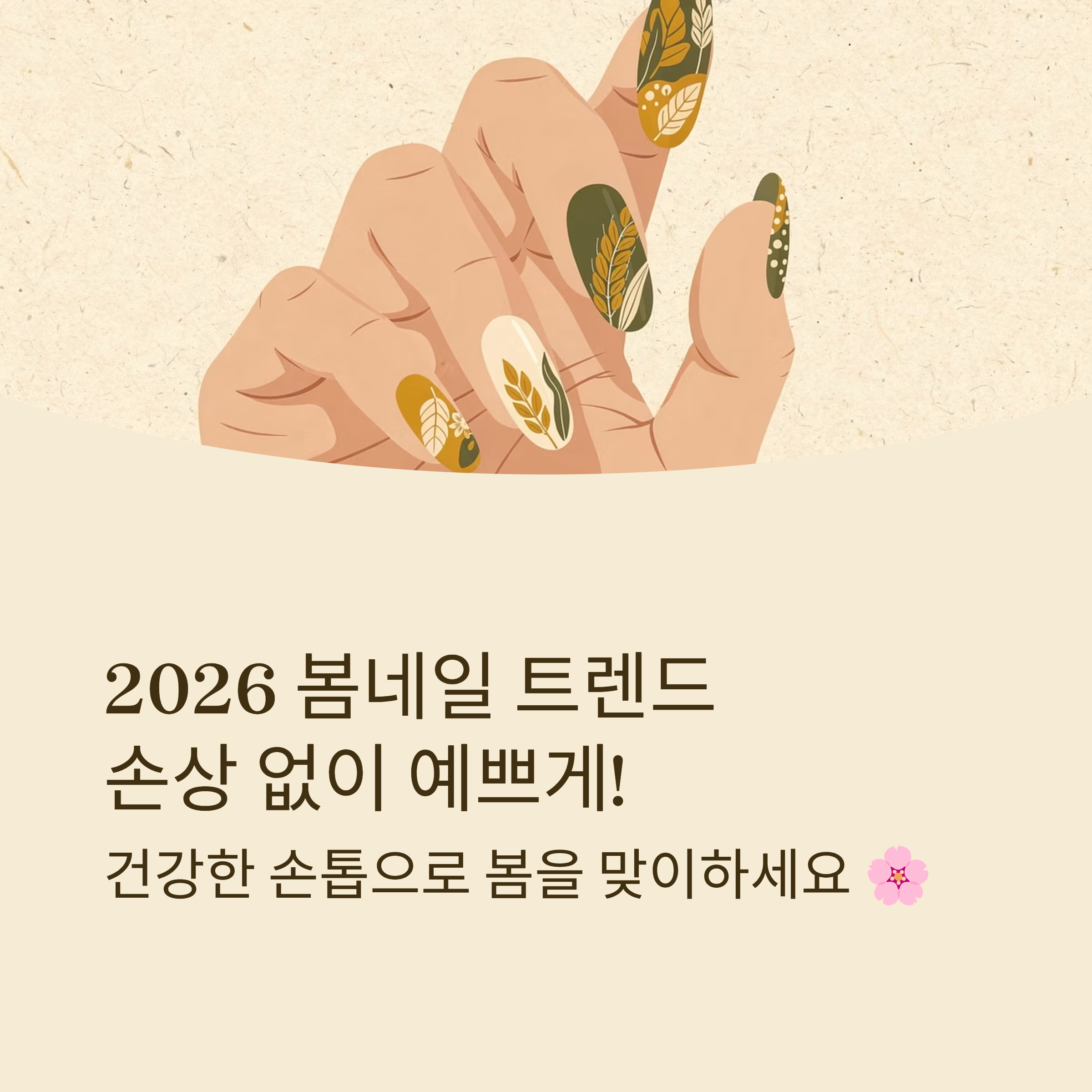 2026년 봄, 손끝에서 계절을 표현하고 싶은 사람들이 많아지고 있어요. 특히 네일은 옷보다도 먼저 계절을 담아낼 수 있어서 더욱 주목받고 있죠. 하지만 예쁘기만 하면 되는 건 아니에요. 손상 없이, 건강하게 즐기는 게 핵심이에요! 이 글에서는 지금 가장 핫한 봄네일 트렌드와 함께, 손톱 손상 걱정 없이 예쁘게 관리하는 방법까지 알려줄게요. 🌸