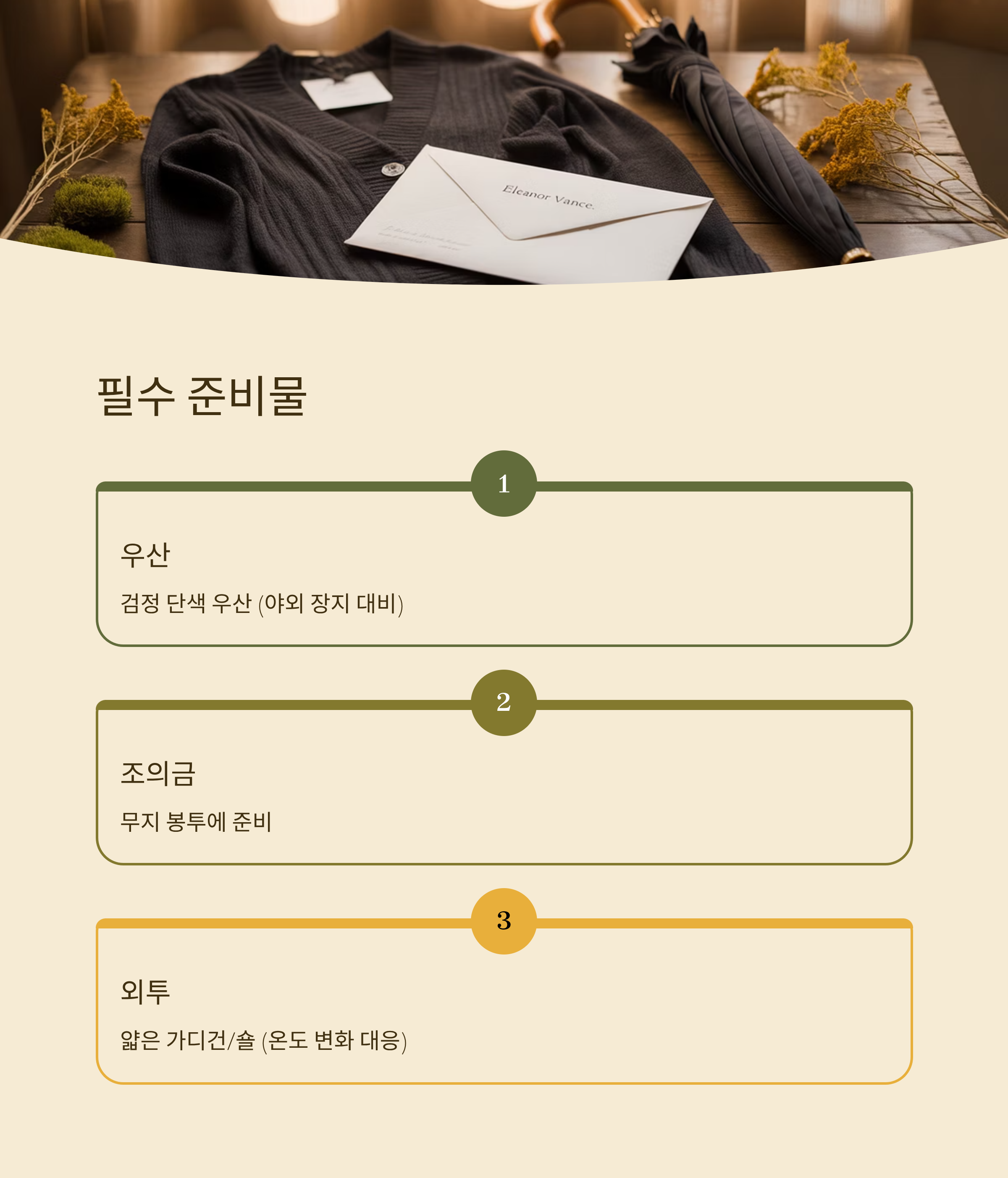 | 우산 | 야외 장지 대비 | 검정 단색 권장 |
