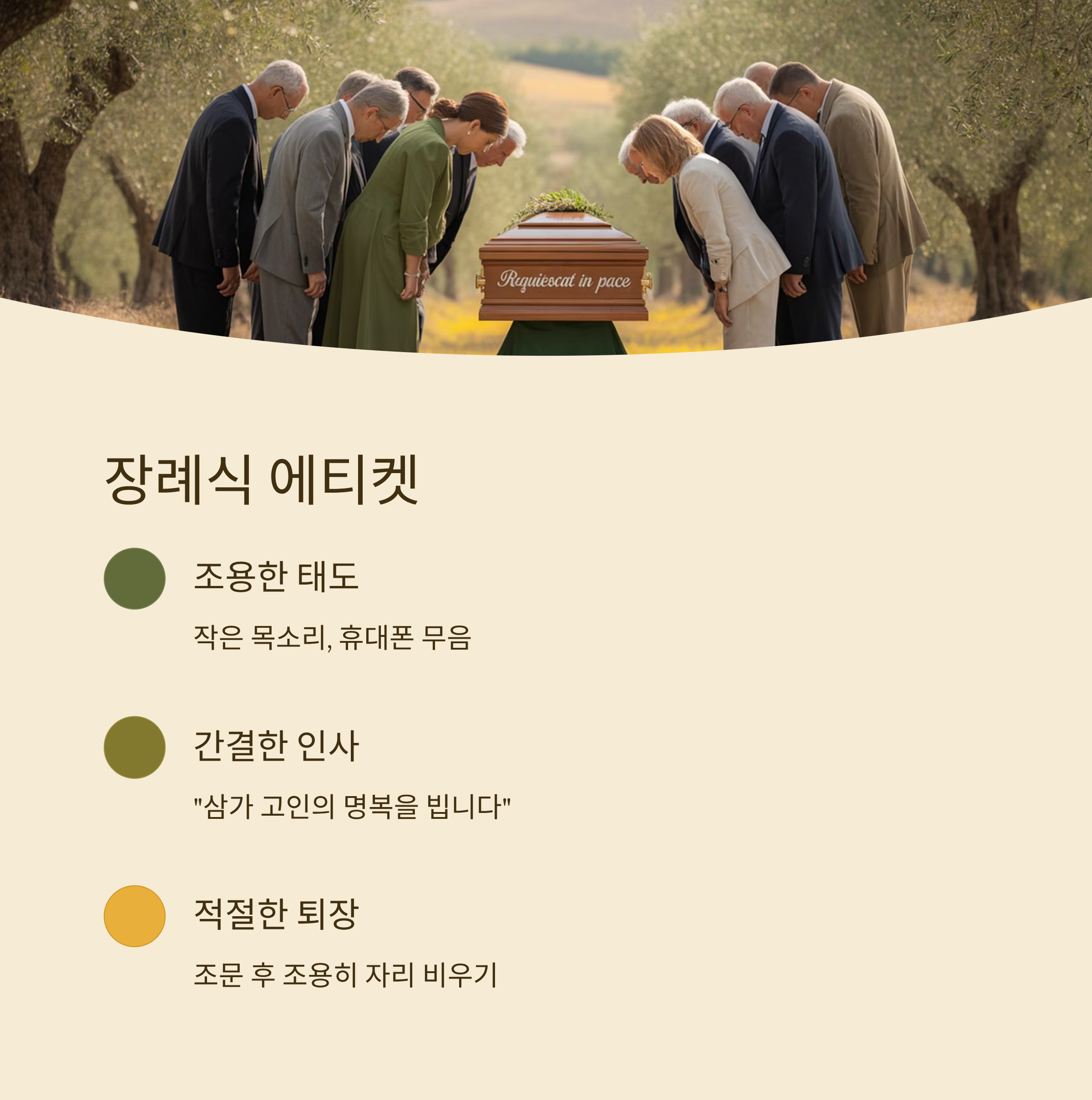 마지막으로, 조문을 마친 후에는 가능한 조용히 장례식장을 떠나고, 다음 참석자들을 위해 길을 양보해주는 배려도 중요해요. 복장도 중요하지만 결국 마음과 태도가 가장 기억에 남는 법이에요.
