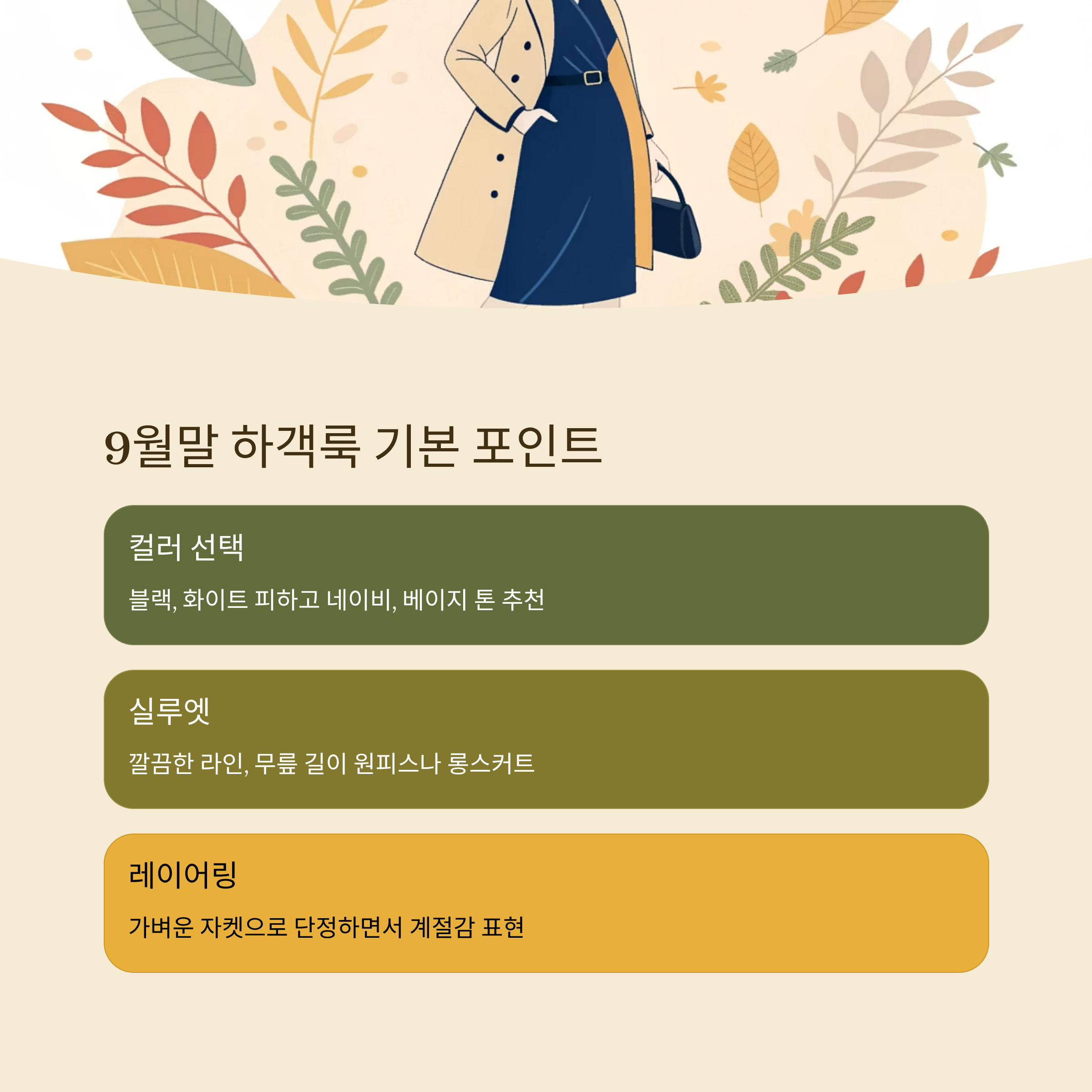 특히 9월말은 가을 패션이 본격적으로 시작되는 시점이라 브라운 네이비 버건디 같은 컬러들이 하객룩에 잘 어울려요. 계절감 있는 소재와 함께 적절한 길이감과 단정한 라인을 선택하면 예의 바르면서도 감각적인 인상을 줄 수 있답니다.