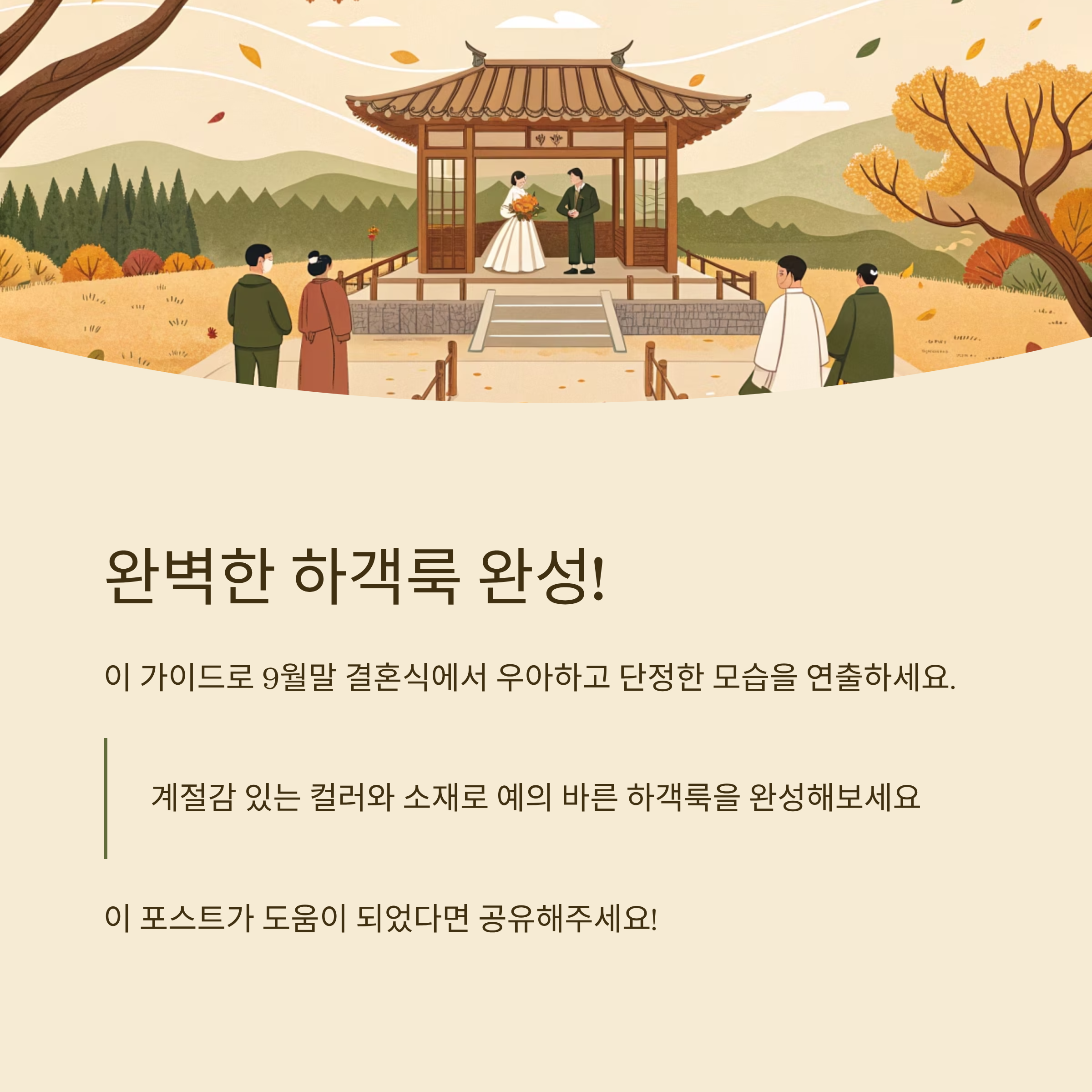 9월말 결혼식은 낮에는 아직 따뜻하지만 저녁이 되면 제법 선선해지는 날씨가 특징이에요. 그래서 하객룩을 준비할 때는 포근함과 우아함을 동시에 고려하는 게 좋아요. 결혼식 자리에서는 단정하면서도 계절감을 살린 스타일이 환영받기 때문에 가을 무드에 맞춘 코디가 필요해요.